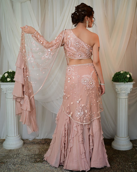 25% offOld rose frill draped saree