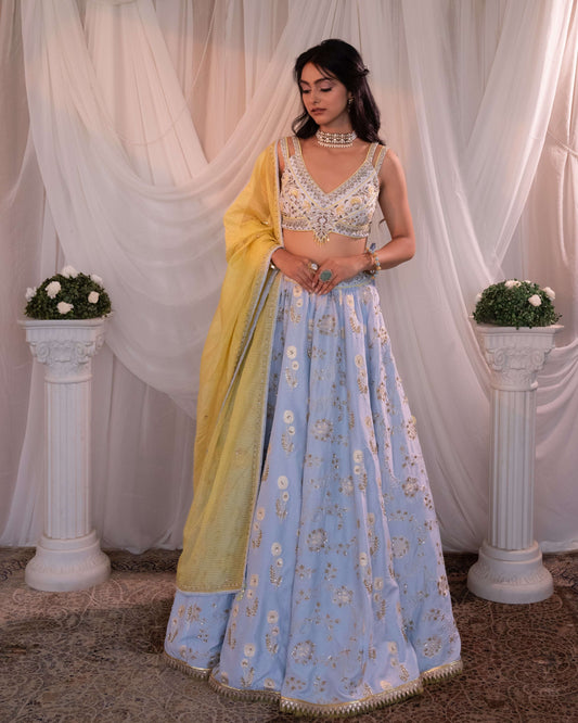 25% offPowder blue - lemon lehenga