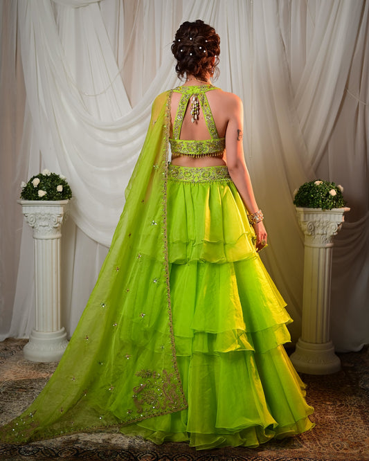25% offGreen frill lehenga set